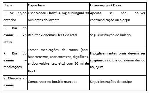 É imprescindível que o (a) paciente (e/ou responsável) leia todo o conteúdo deste preparo e informativo descrito do exame, antes de comprar as medicações e de começar o preparo.